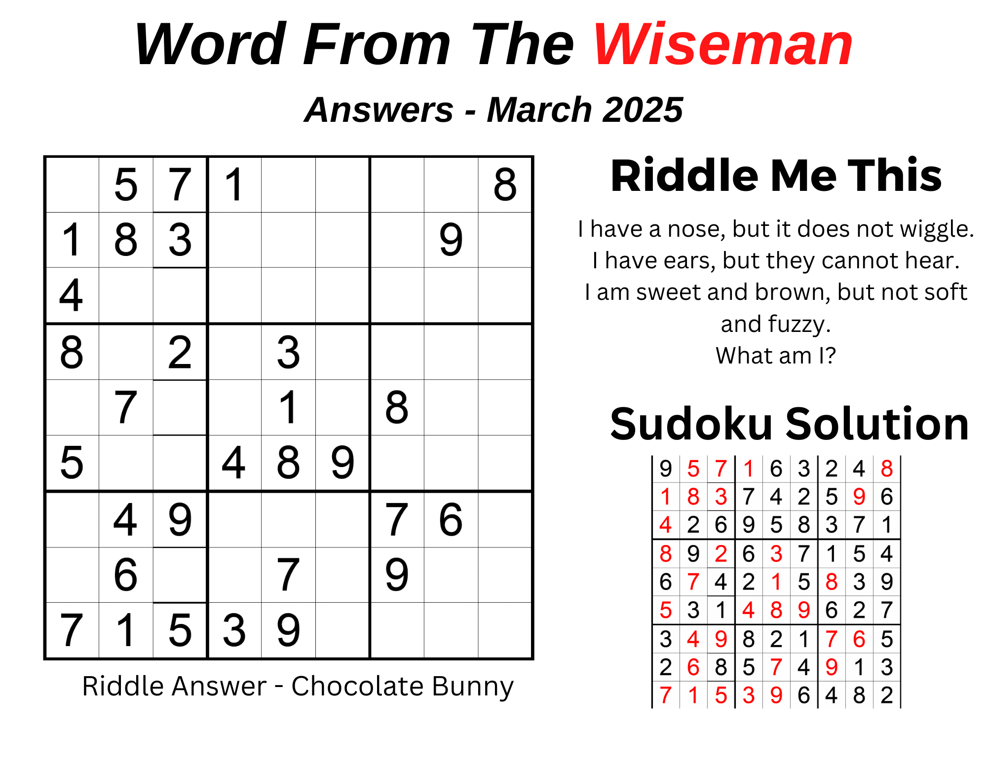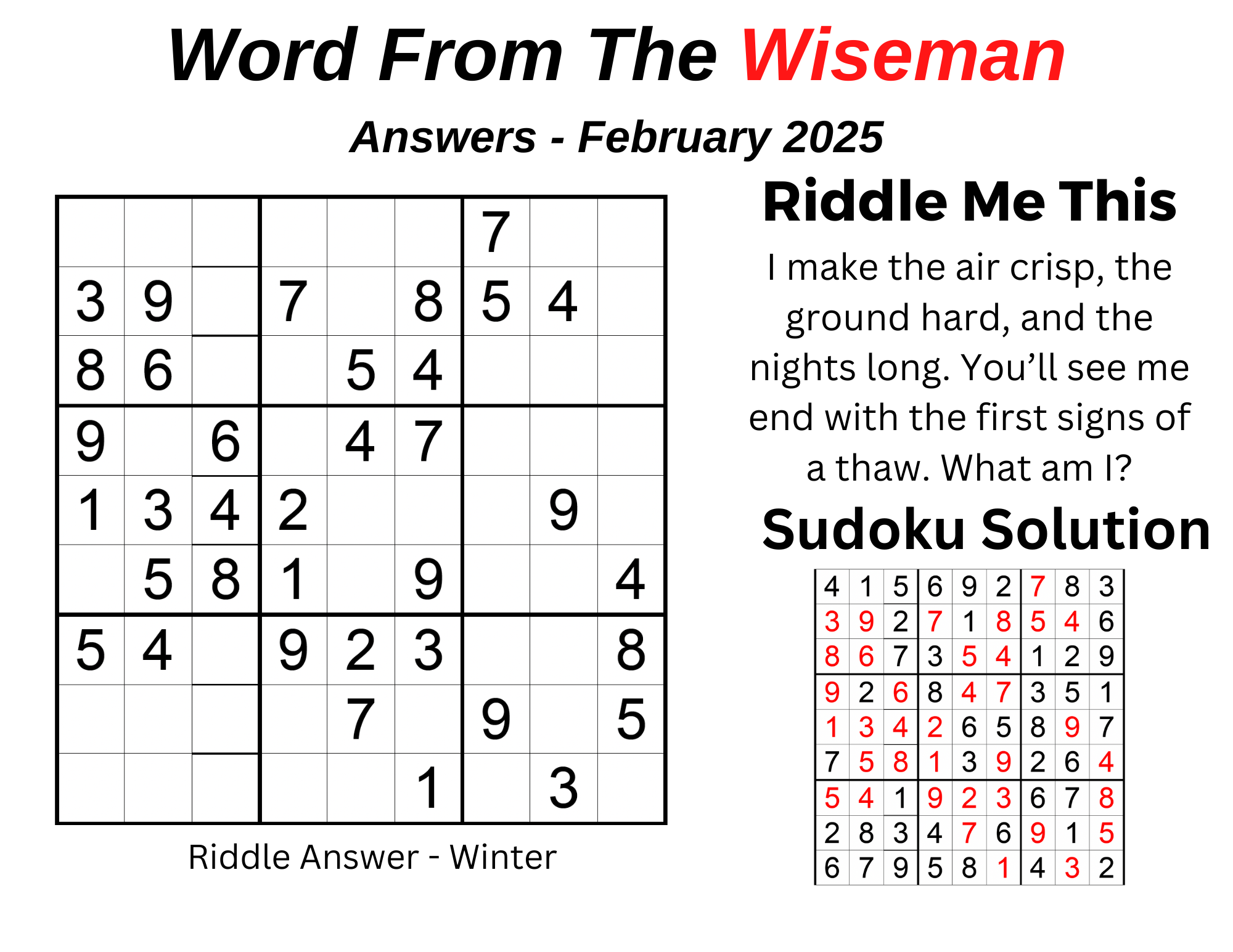 February 2025 | Newsletter Answer Key