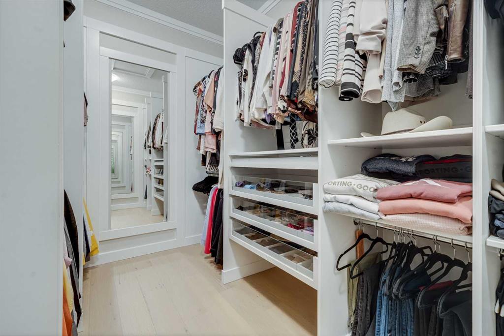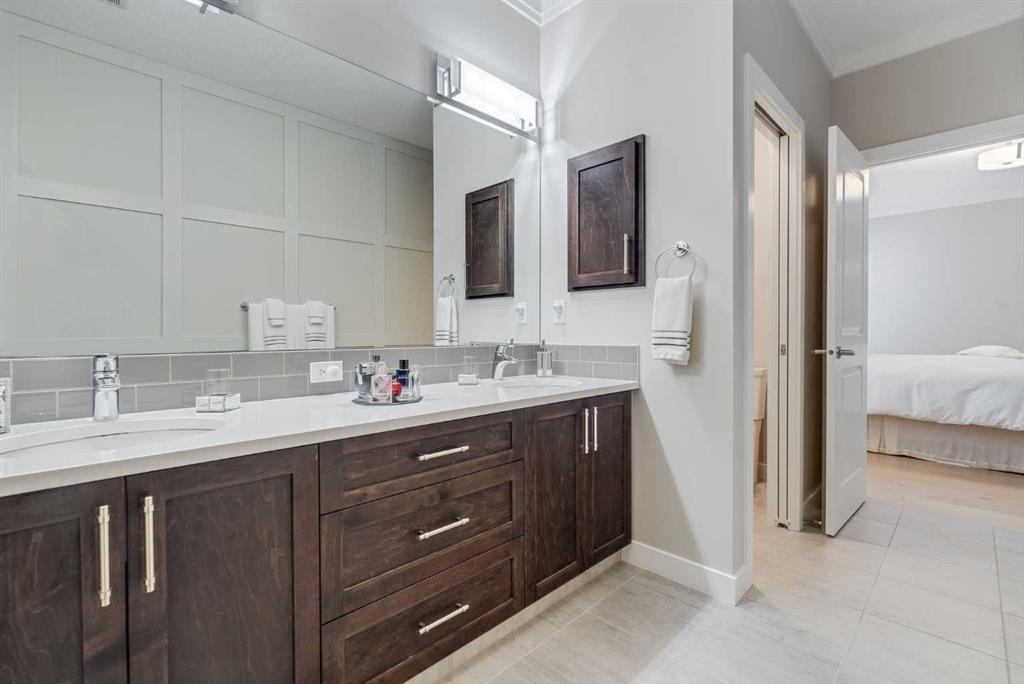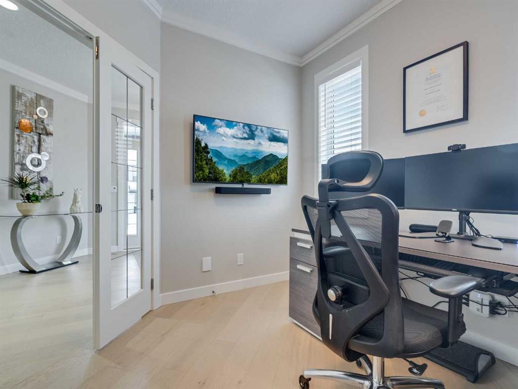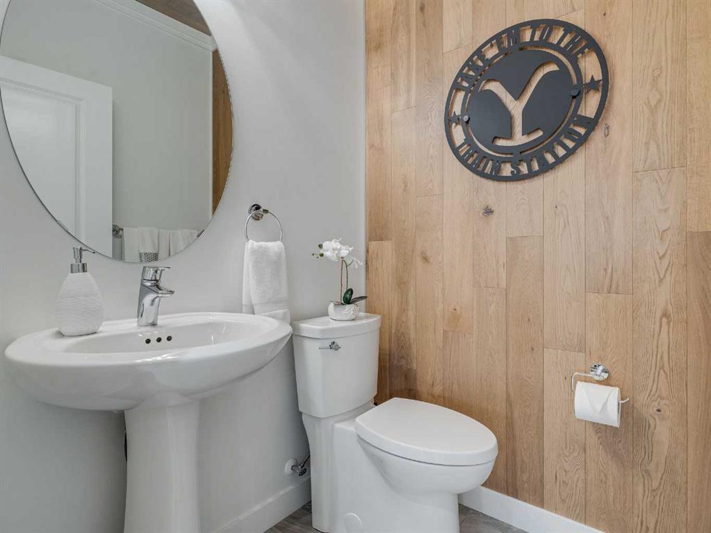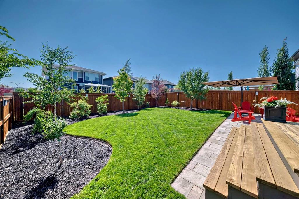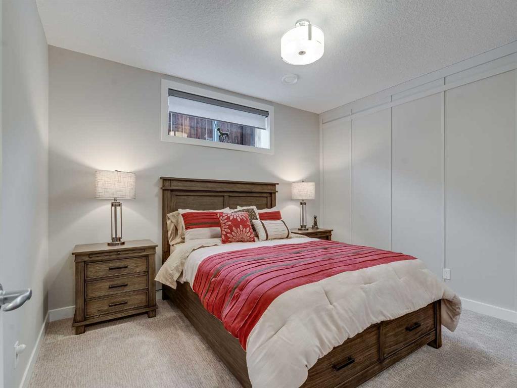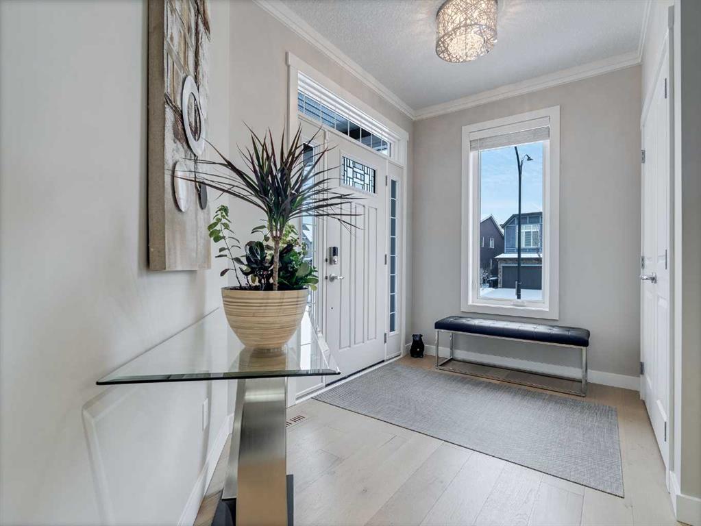 Welcome to luxury living in Cranston Riverstone. This former show home sits on a prime corner lot just steps from the scenic Riverwalk and Bow River, offering a lifestyle of elegance, comfort, and convenience. Inside, this fully upgraded, air-conditioned bungalow features over 2,712 sq. ft. of thoughtfully designed living space. The main level boasts 9′ ceilings, wide-plank engineered hardwood flooring, and detailed millwork that creates a refined, sophisticated ambiance. An open-concept layout highlights a stylish living room with a stone-clad gas fireplace (with adjustable fan), custom accent wall, and hidden compartment for a clean, clutter-free look. The chef’s kitchen is built to impress with premium built-in KitchenAid appliances, gas cooktop, custom soft-close cabinetry, under-cabinet LED lighting, and a large island featuring dual power outlets and garburator-ready wiring. The primary suite is a serene retreat with a striking stone feature wall, custom walk-in closet with glass-front drawers and full-length mirrors, and a spa-inspired ensuite with a tiled shower, bench, and built-in wall niches. The fully developed basement has just been upgraded with beautiful white oak luxury vinyl plank flooring and offers a theater-ready family room wired for 7.1 surround sound, a sleek wet bar with full cabinetry, home gym space, and a second fireplace with built-in fan. Smart and stylish throughout, this home includes keyless entry (front and garage), smart home wiring for future upgrades, central vacuum on all levels including the garage, motion-sensor lighting in closets, LED dimmer switches, and an oversized 12’ garage perfect for storage or a car hoist. The professionally landscaped yard is low maintenance and includes built-in blinds in the double garden doors, a BBQ gas line, deck outlets, two exterior water taps, outdoor pot lights on timers, hot/cold garage taps, a slat-wall garage system, and exterior keypad entry. This home truly blends luxury and lifestyle—don’t miss your chance to experience it.